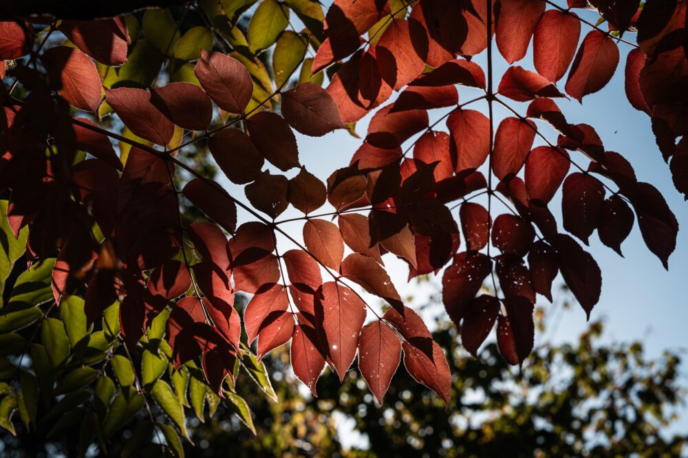 Walking here in September is to sense time in layers. Above, in the clearings between branches, the sky seems washed and distant, its blue touched with silver. On the ground, the soil has taken on a darker hue, the moist richness of rain after heat. Between these layers, in the middle register, plants shift in tone. The green of summer has thickened, become heavier, more substantial. Even leaves yet untouched by autumn flame feel weighted, as though they have drawn in all the light they can bear, and are ready now to release it.